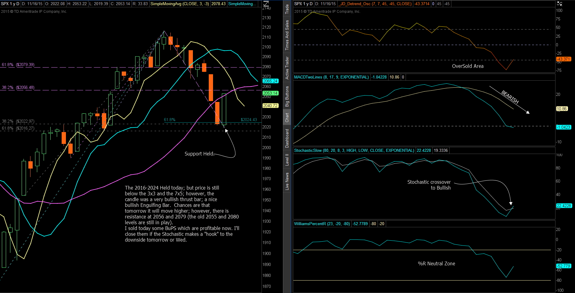Quite a Friday the 13th we had…. we got our $VIX warning signal, and it looked like it could be a repeat of Aug 20-24… however, a significantly more minor one; $SPX was only down 1.12% for the day. Then the Paris attacks instilled fear, but because they happened Friday, with the weekend to digest, it was anyone’s guess what Monday would look like.