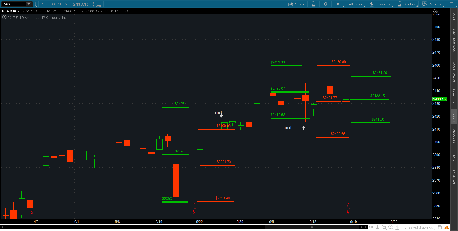 June 26th 2390/2360 put spreads for .25. Sold a smart of a #CondorRoll for 3.60 on June 14th.