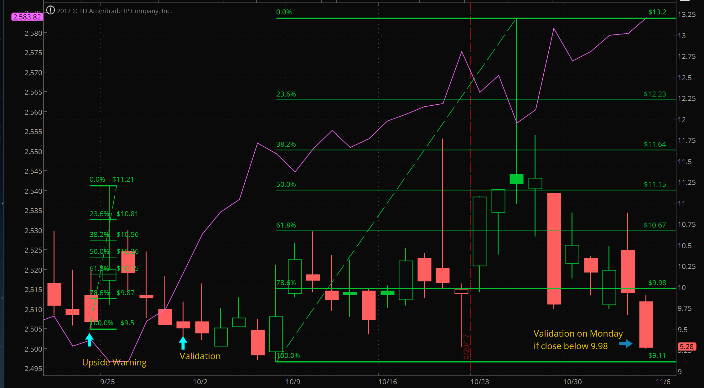 Closed Nov 10th 2565/2590 call spreads for 14.00. Sold for 10.80 on Oct 26th.