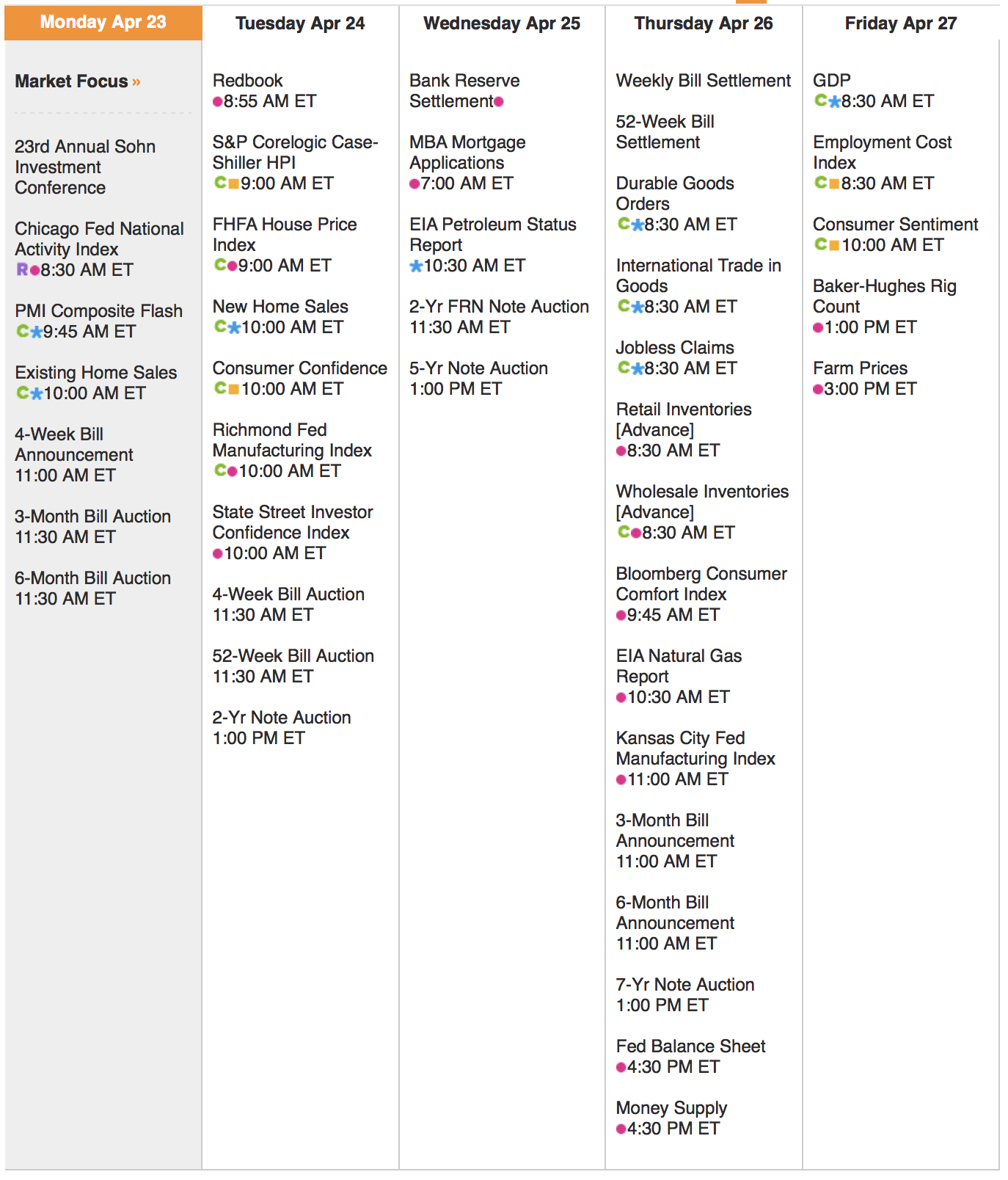 Econ Calendar for week of 4/23/18