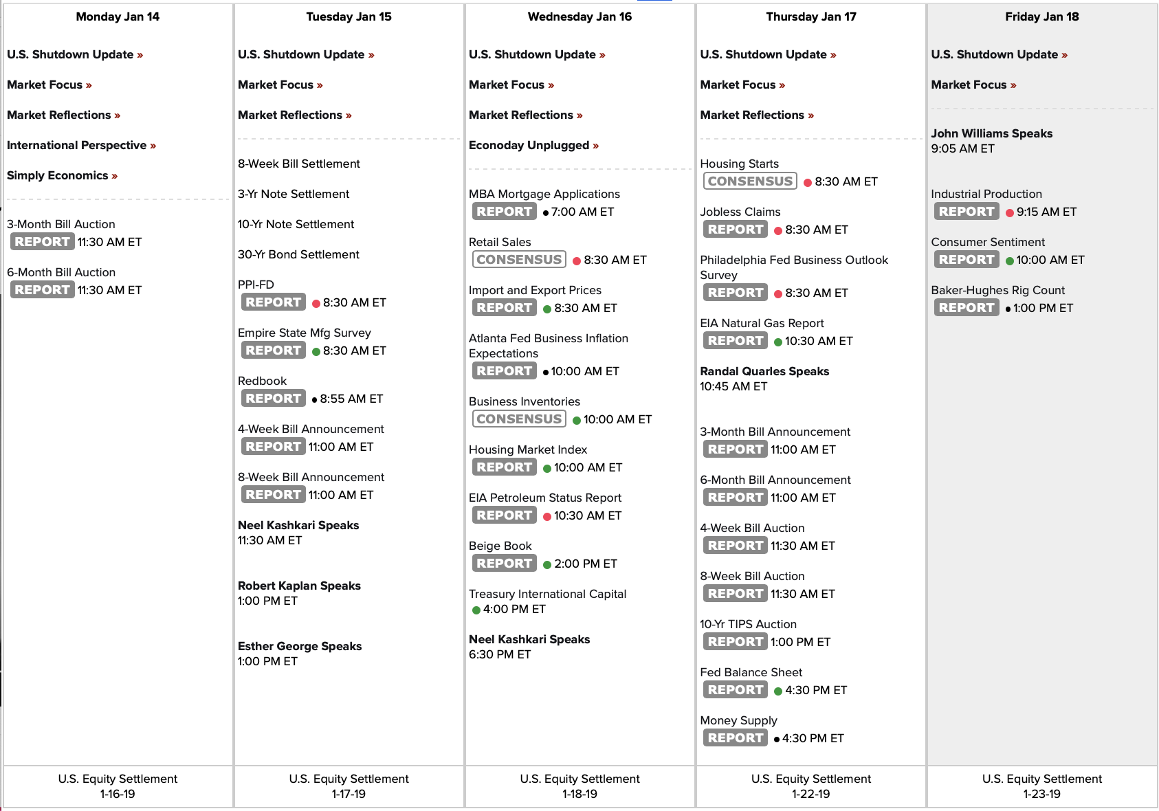 Econ Calendar for week of 1/14/19