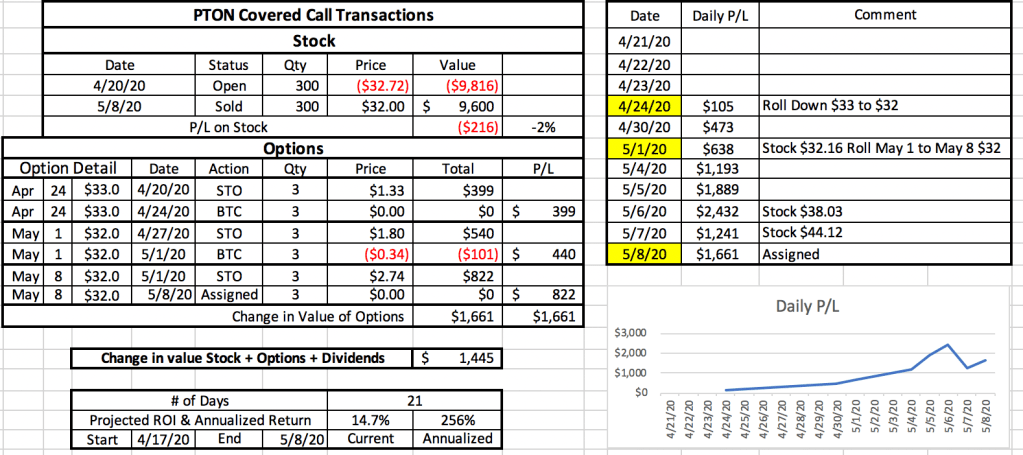 Should have rolled up prior to earnings announcement and again yesterday after strong opening. I would like to have a position in PTON and continue writing. I rolled PTON up in other account…caught sleeping on this one.
