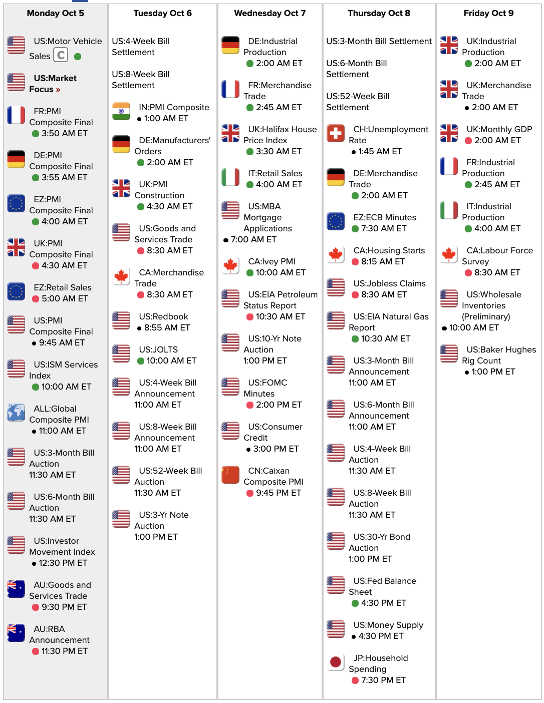 Econ Calendar for week of 10/5/20