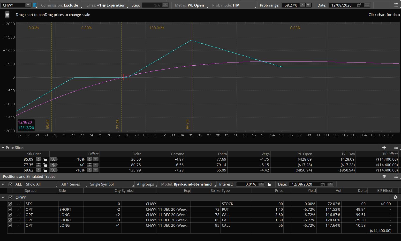 Sold CHWY DEC 18 2020 68.0 Puts @ .93