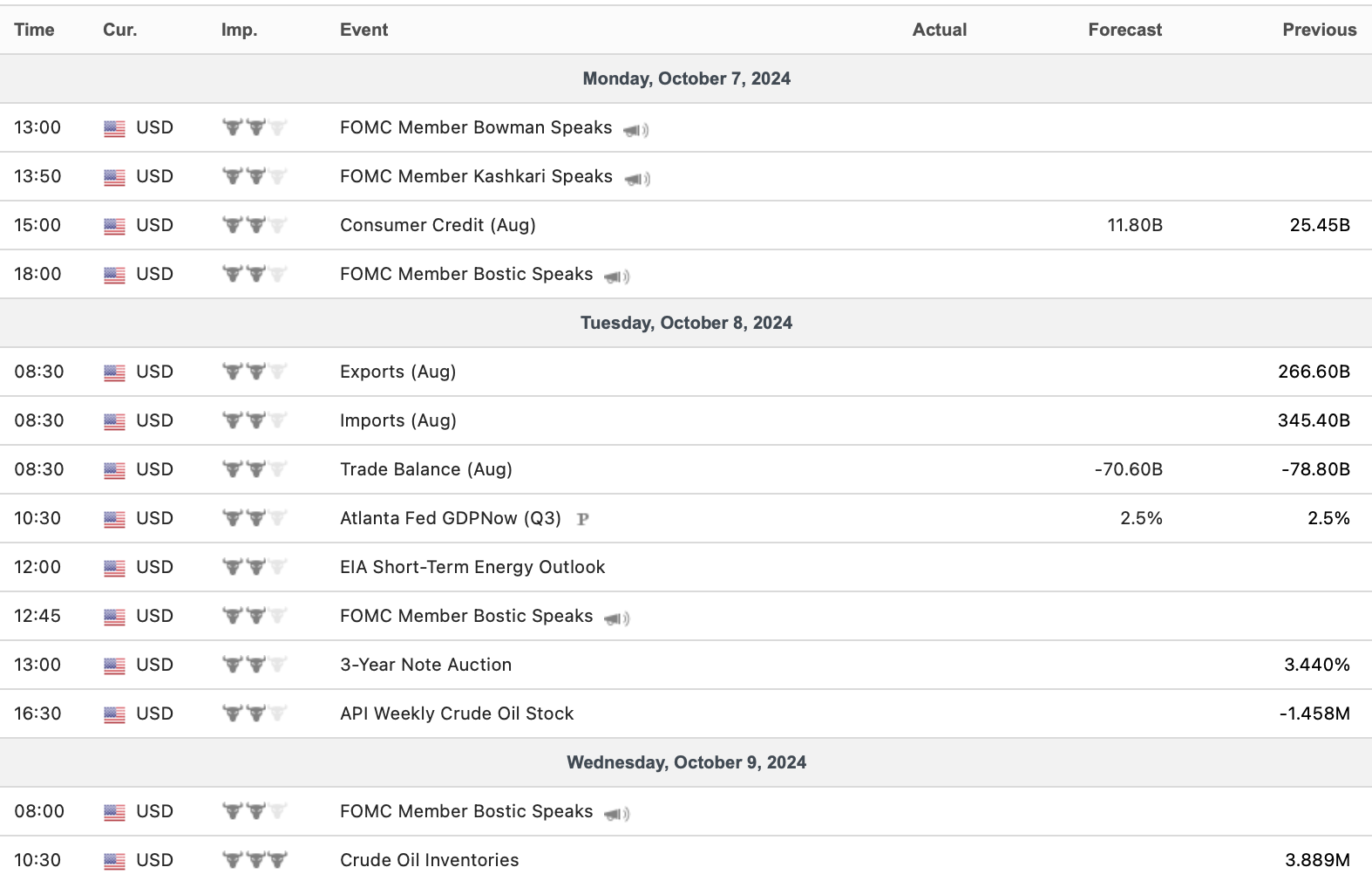 Jeff 8:59 am on Sunday, October 6, 2024 Econ Calendar 10/7 – 10/11 Two bond auctions this week, and the big CPI on Thursday.