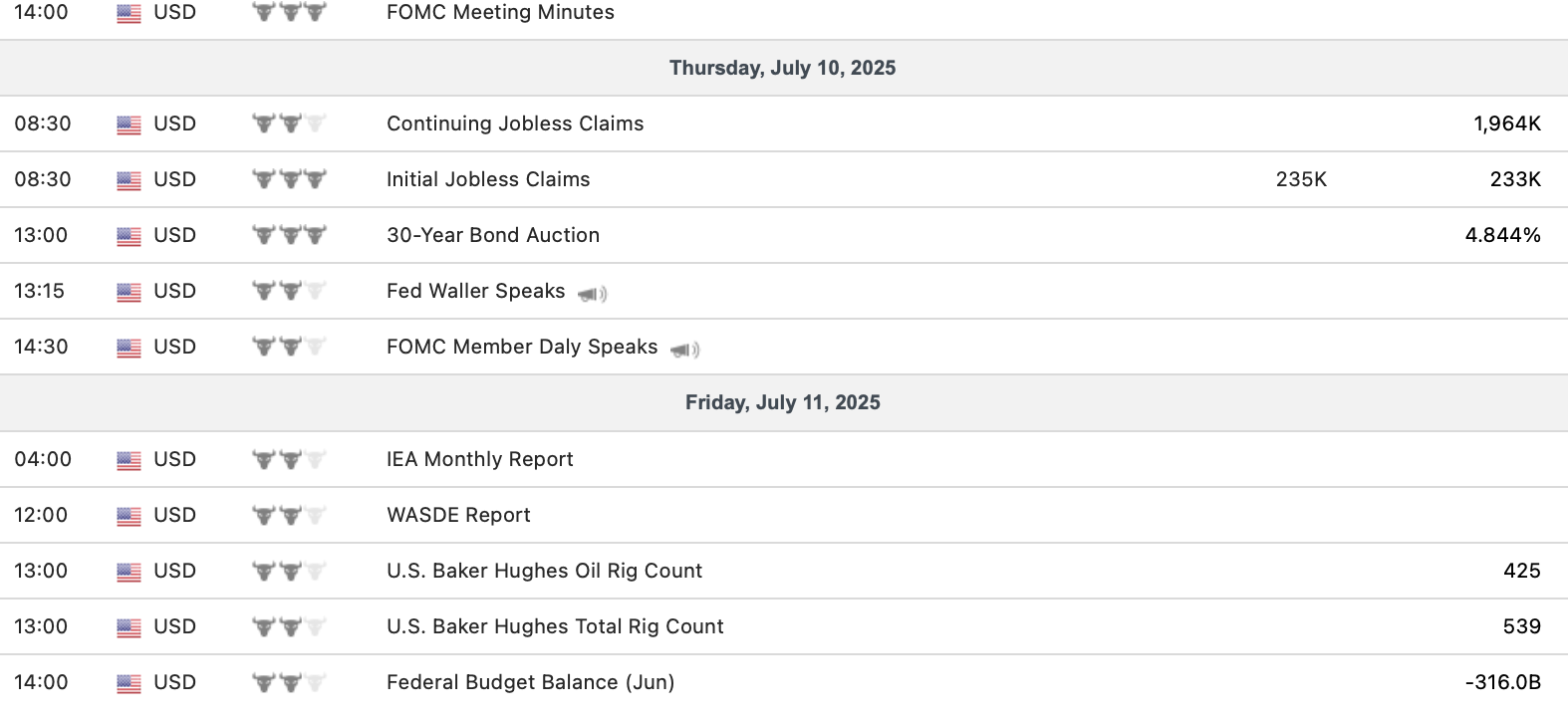 Econ Calendar 7/7 – 7/11