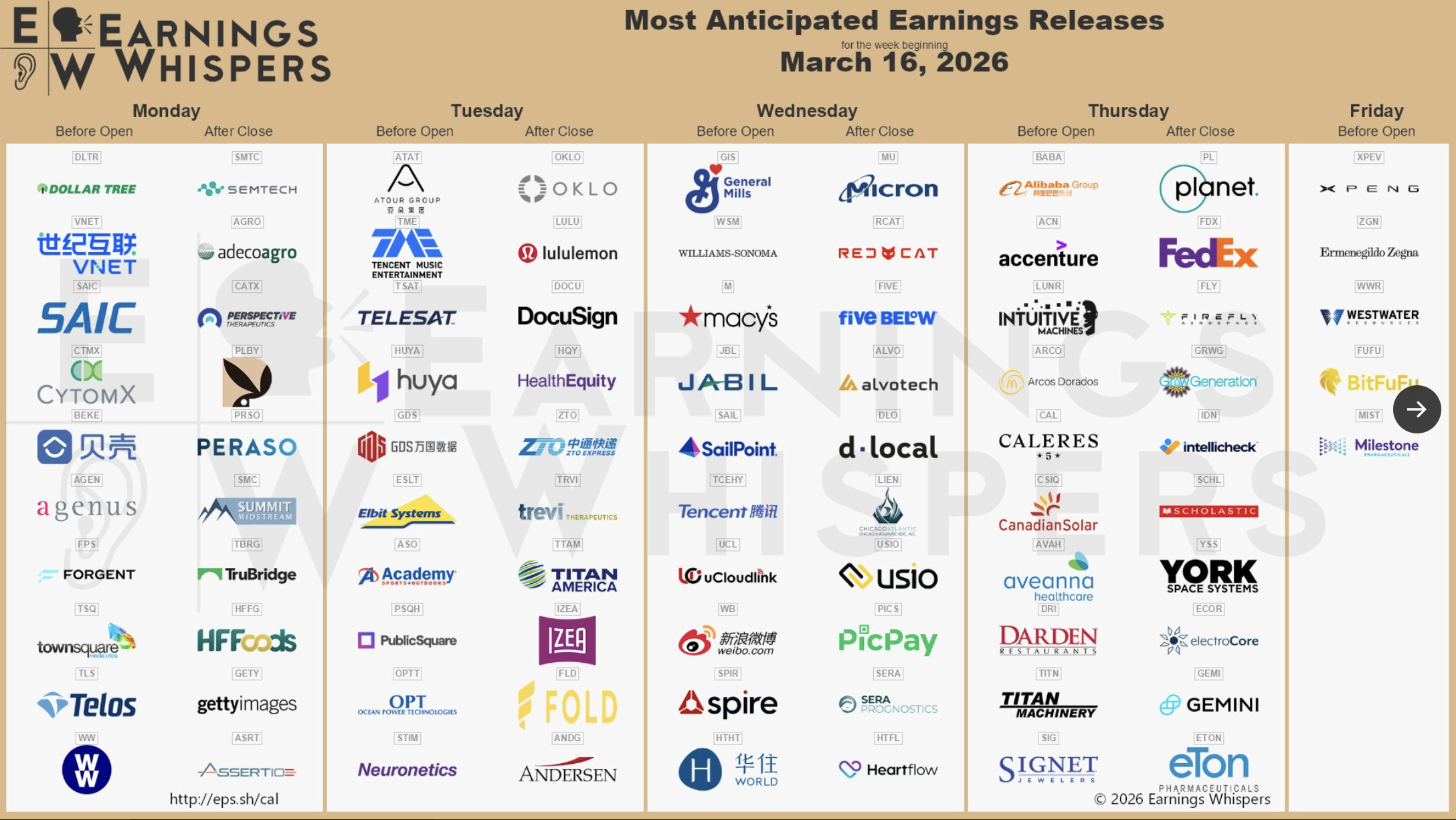 Earnings 3/16 – 3/20