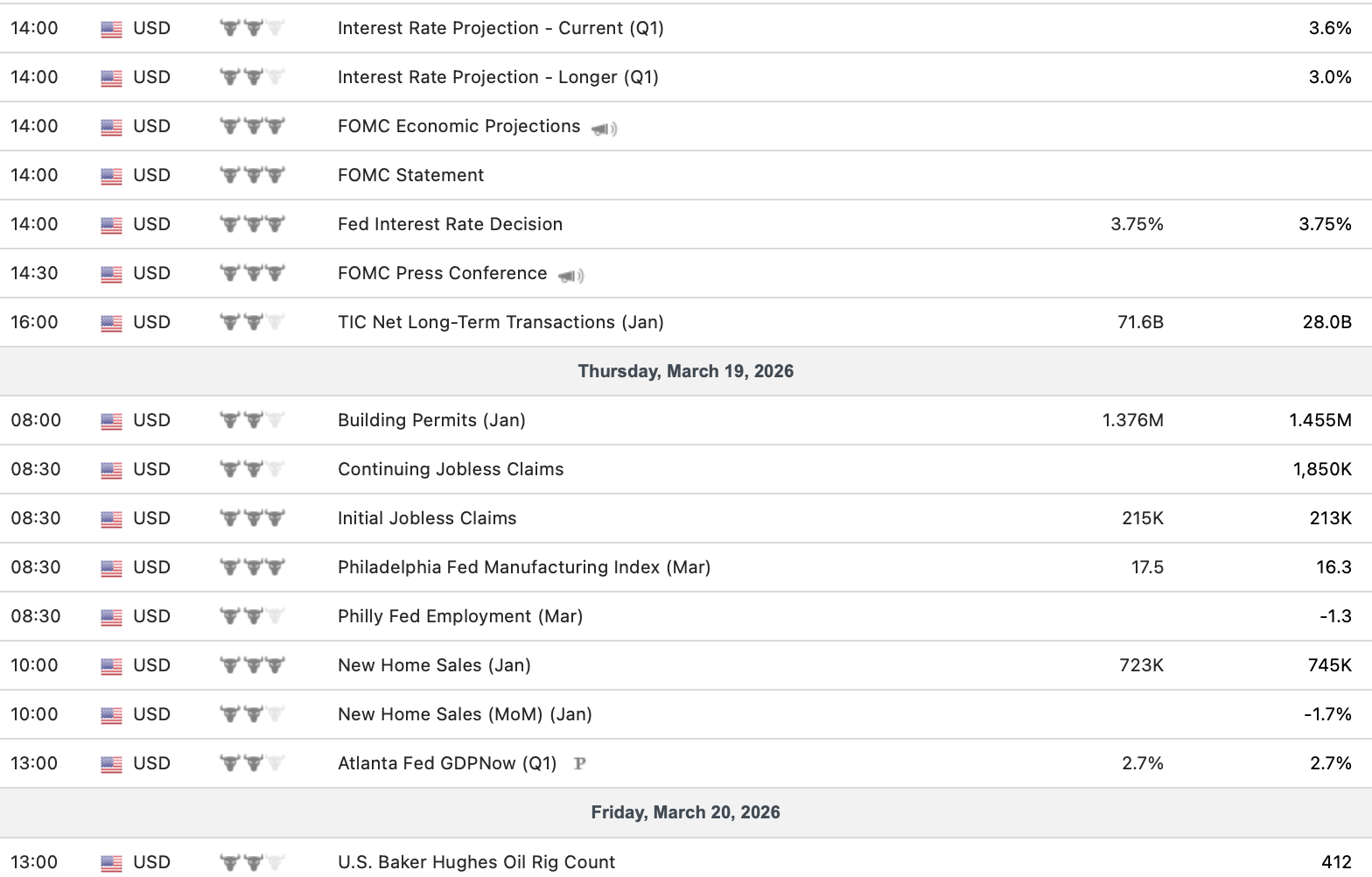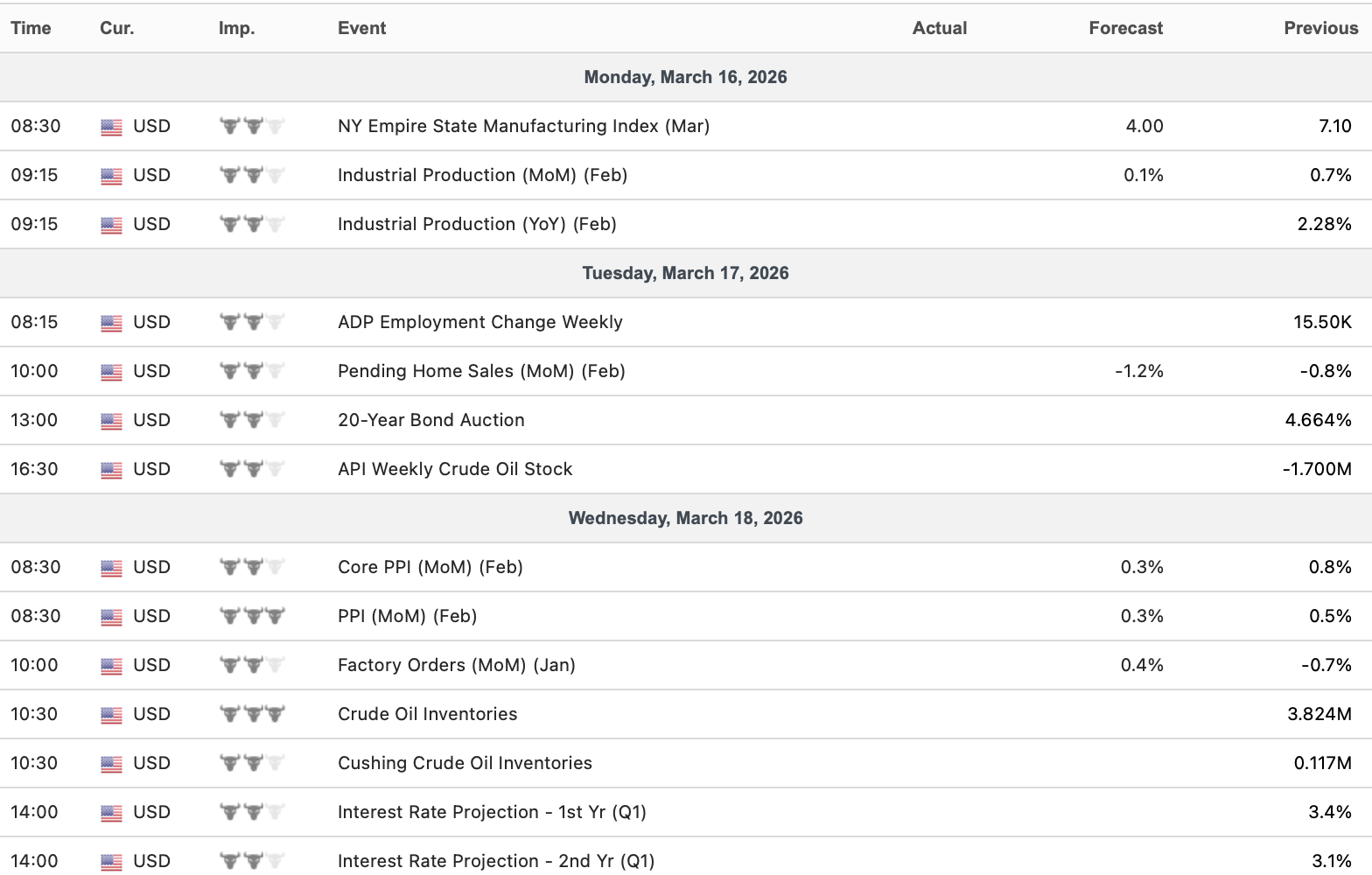 Econ Calendar 3/16 – 3/20
