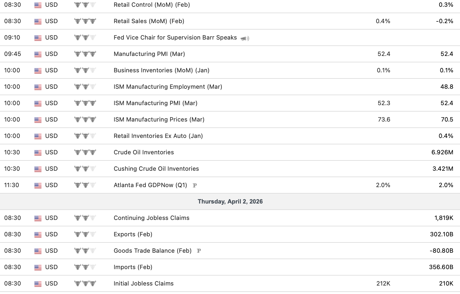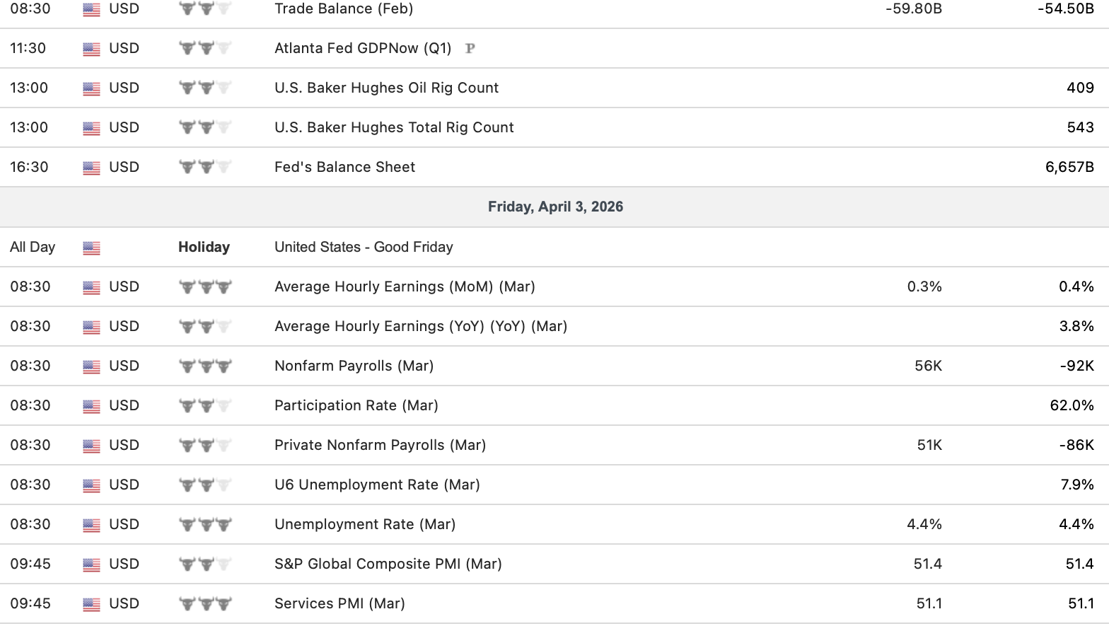 Econ Calendar 3/30 – 4/3
