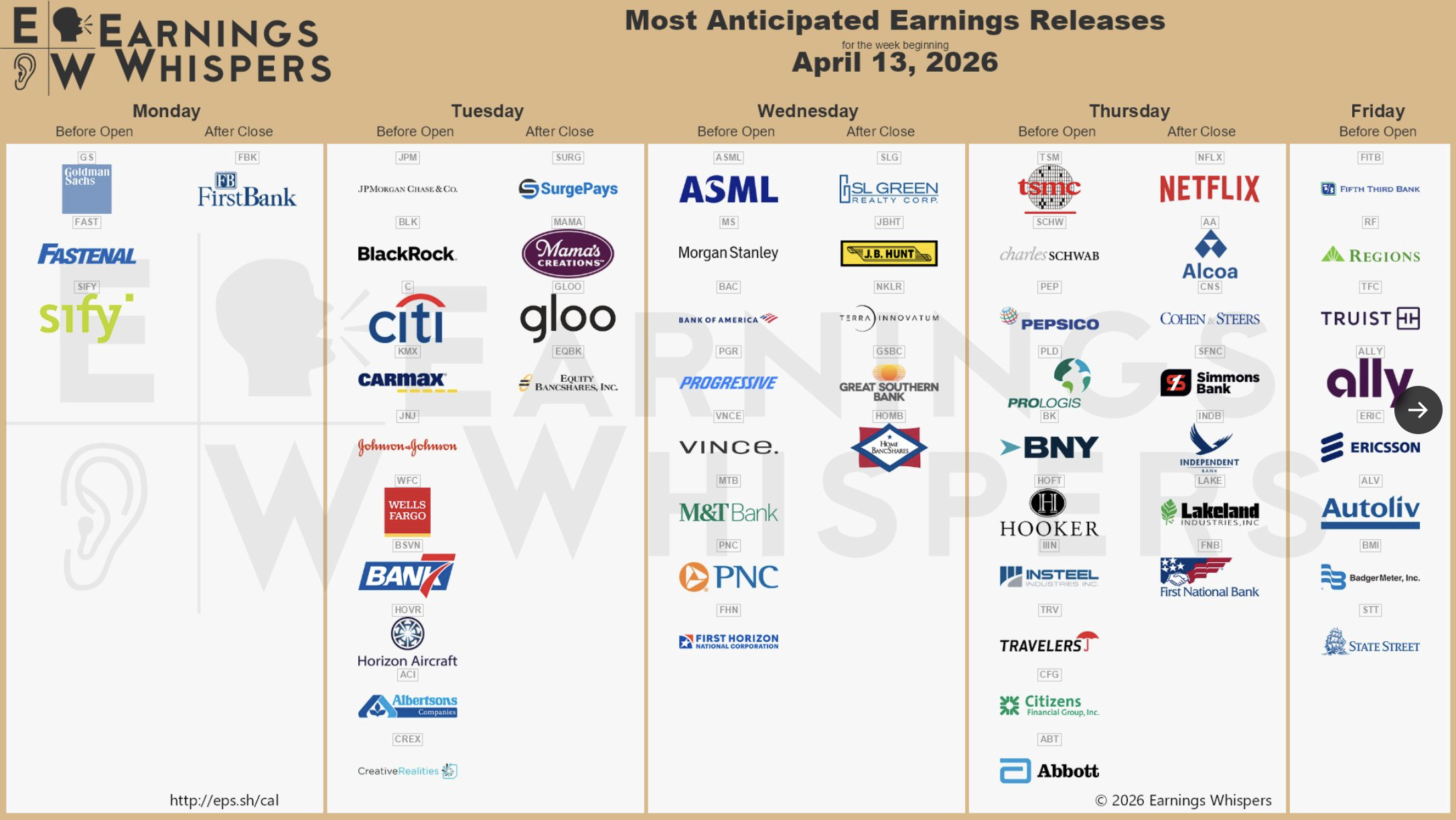 Earnings 4/13 – 4/17