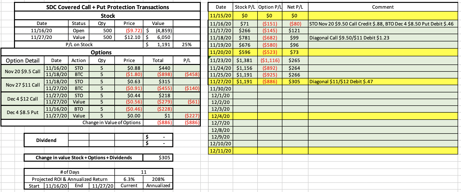 I try and hold my stock positions for 12 months so I only pay long term capital gains when I sell them (which can be a challenge based on the tax rules). Lots of rolls on the options. Some weekly, some monthly.