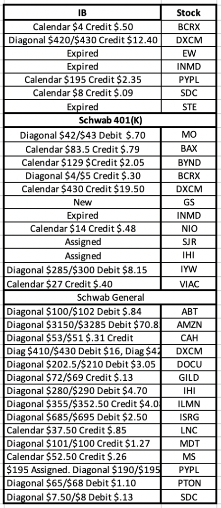 All the positions below are part of covered call strategies across three accounts. Assigned on a couple I wasn’t planning on. Just couldn’t get all the trades done. Internet at the cottage in Canada is functional….but not ideal.
