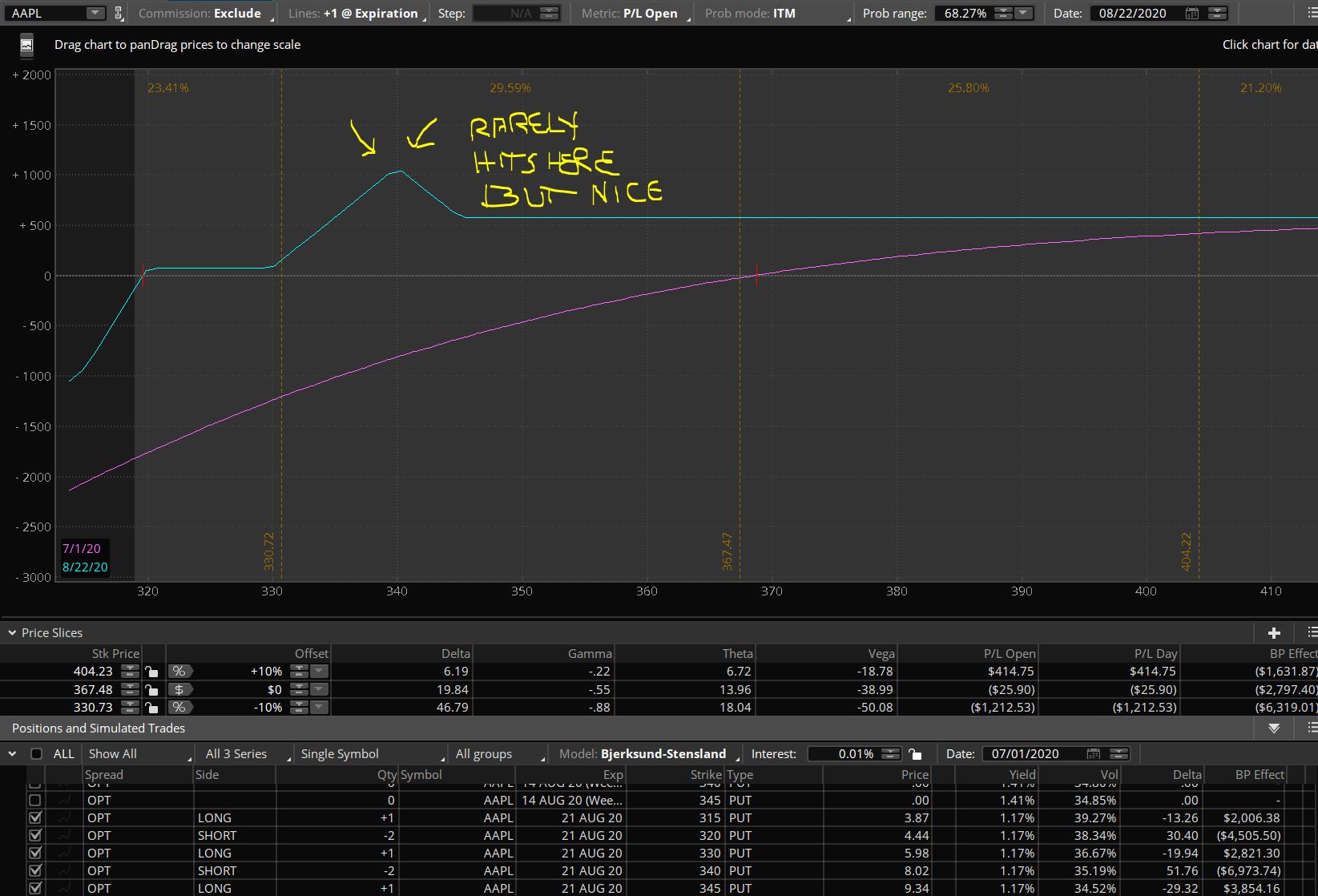 Wish I hadn’t closed this, the breakeven was super far away…should have let more juice drain off until 20 DTE (right after these words were published AAPL dropped from $400+ to the 360’s on anti-competitive news reports, so closing was a good move in hindsight)