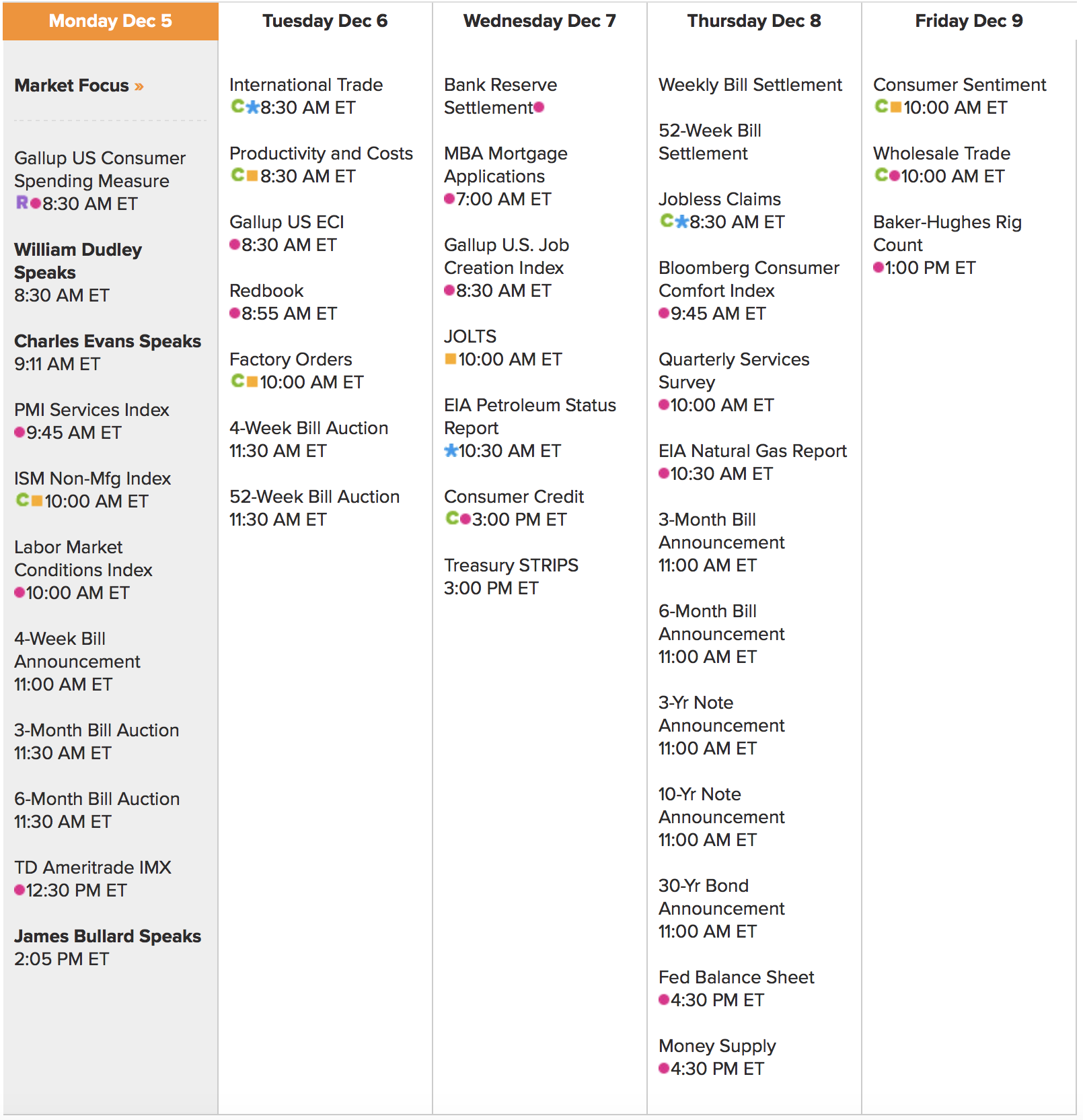 #Markets Blue stars indicate “market-moving indicators.” Pretty light schedule this week.